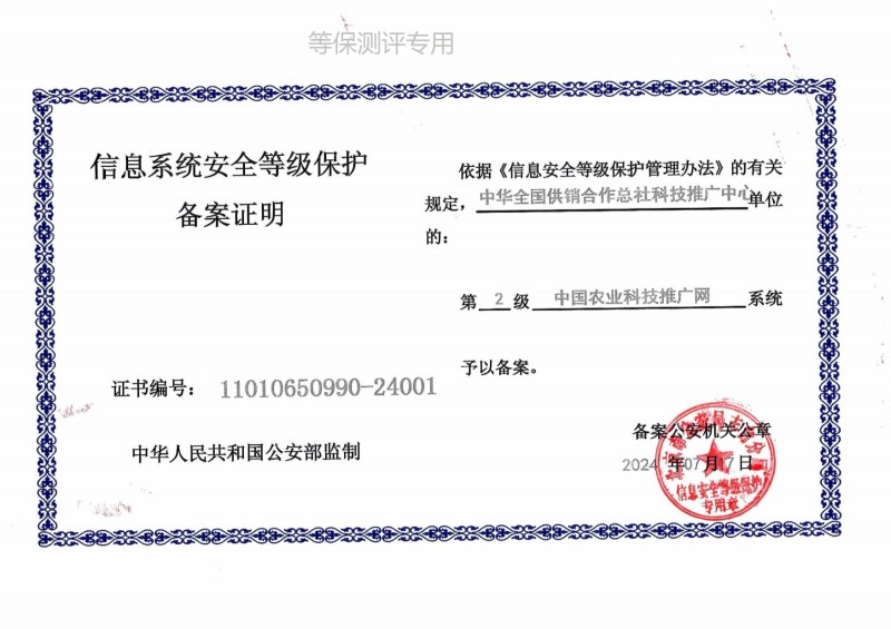 China Agricultural Science and Technology Promotion Network is a socialized service platform for agricultural science and technology, sponsored by Science and Technology Promotion Center of All-China Federation of Supply and Marketing Cooperatives. It is a professional non-profit platform specializing in the transformation, popularization and application of agricultural scientific and technological achievements, scientific and technological products, practical technologies and agricultural scientific and technological information services. To provide comprehensive technology and information services for the whole industrial chain of agriculture before, during and after production.