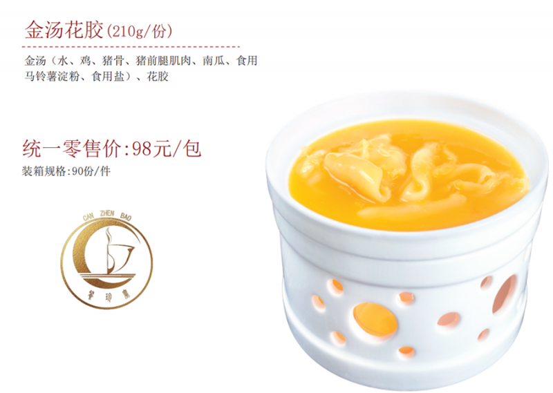 金湯花膠(210g/份) 金湯(水、雞、豬骨、豬前腿肌肉、南瓜、食用 馬鈴薯淀粉、食用鹽)、花膠 統(tǒng)一零售價(jià):98元/包 裝箱規(guī)格:90份/件 共0條 相關(guān)評(píng)論 |