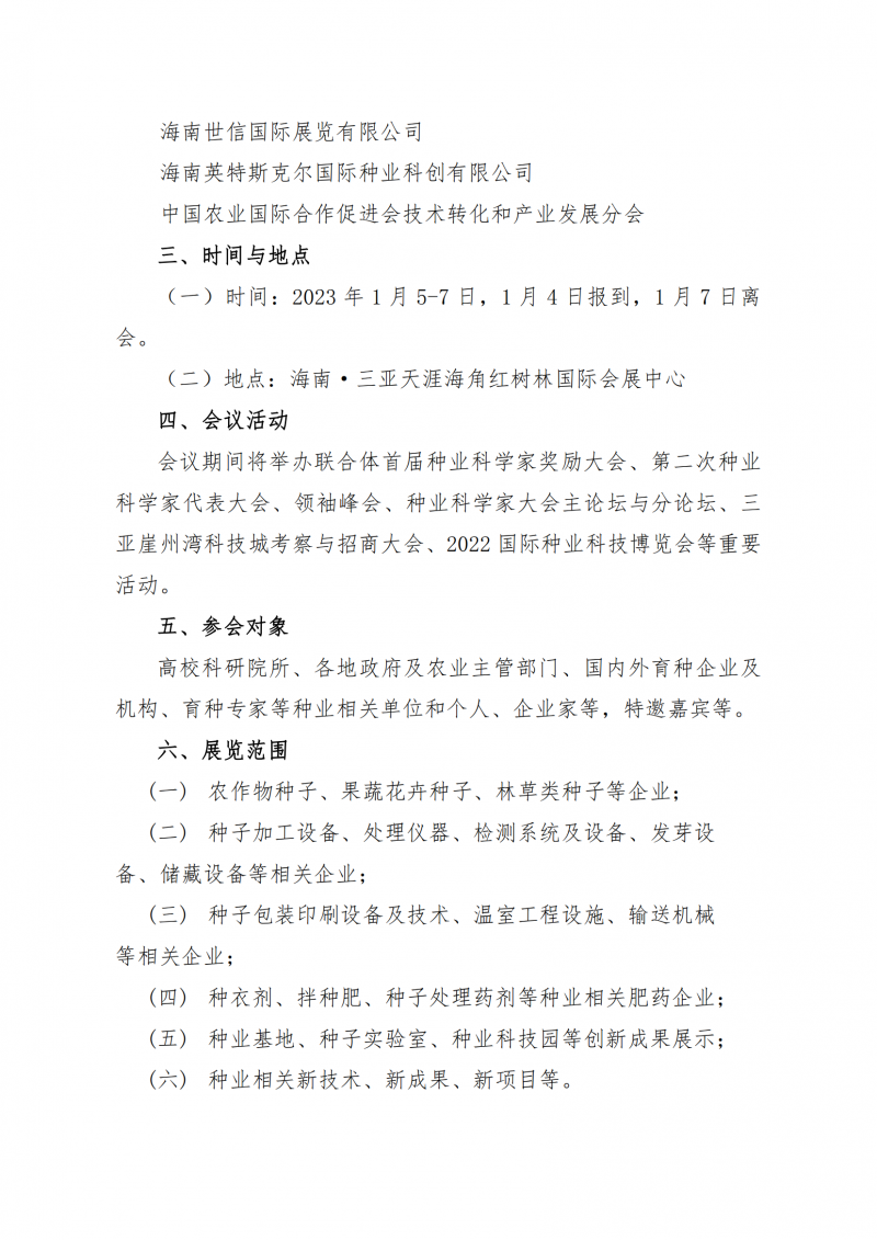定檔!第二屆三亞國(guó)際種業(yè)科學(xué)家大會(huì)暨2022國(guó)際種業(yè)科技博覽會(huì)將于1月5日召開(kāi)!