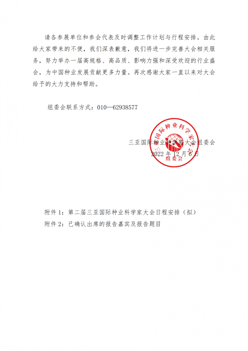 第二屆三亞國(guó)際種業(yè)科學(xué)家大會(huì)日程安排(擬)