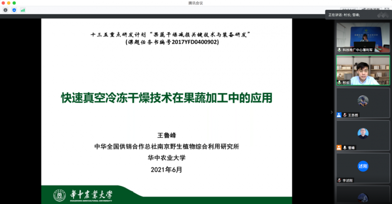 2021年6月,中華全國供銷合作總社科技推廣中心作為供銷合作系統(tǒng)內(nèi)唯一受總社委托開展科技成果管理相關(guān)工作的機構(gòu),按照科技部《科技成果評價辦法》,本著“科學(xué)、獨立、客觀、公正”的原則,組織七位相關(guān)領(lǐng)域?qū)<乙砸曨l會議形式對中華全國供銷合作總社南京野生植物綜合利用研究所、華中農(nóng)業(yè)大學(xué)聯(lián)合完成的“快速真空冷凍干燥技術(shù)在果蔬加工中的應(yīng)用”項目進(jìn)行了科技成果評價。