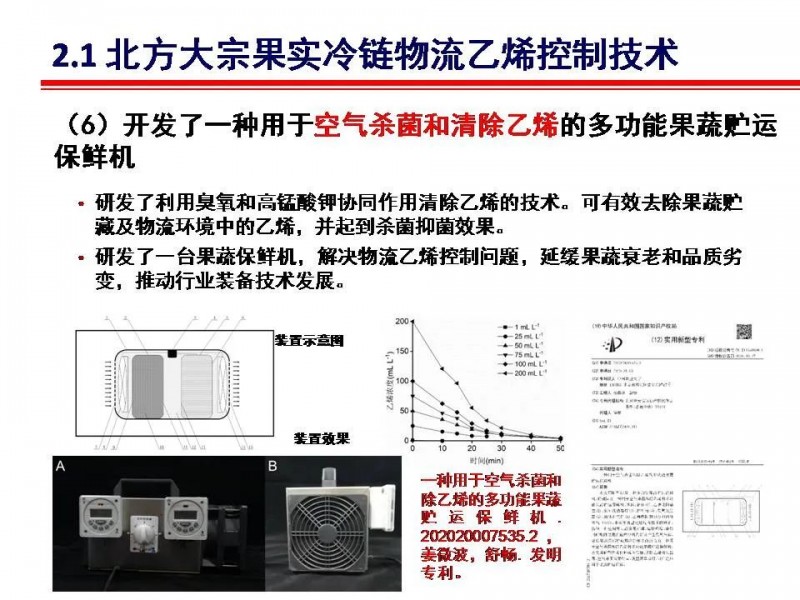 專家組聽取了課題組各單位匯報,審閱了相關(guān)資料,進(jìn)行了交流質(zhì)詢。專家組經(jīng)評審認(rèn)為,課題組研發(fā)了利用阿魏酸酯等對蘋果主要貯藏物流病害的控制技術(shù);利用高光譜成像建立了蘋果粉質(zhì)化與維生素C含量無損傷判別技術(shù);研發(fā)了貯藏物流環(huán)境中空氣殺菌與乙烯清除的裝置;優(yōu)化了蘋果、梨適宜的運(yùn)輸與貨架溫度組合;制備了控制梨果黑斑病的醛類微膠囊;形成了蘋果、梨預(yù)冷和1-MCP一體化處理工藝;研發(fā)了鮮食葡萄冷鏈物流關(guān)鍵保鮮技術(shù)及裝置;研發(fā)了紫外光催化降解乙烯的納米纖維膜,濕度響應(yīng)型的納米保鮮膜,實(shí)現(xiàn)了抗菌劑智能釋放和生菜的保鮮;研發(fā)了具有防霧抗菌功能的透明涂層包裝材料。成果的應(yīng)用能夠有效保持蘋果、梨、葡萄、生菜等在冷鏈物流中的品質(zhì),減少腐爛。成果在蘋果、梨貯運(yùn)品質(zhì)劣變與物流病害控制技術(shù)上具有創(chuàng)新性;在鮮食葡萄冷鏈物流保鮮產(chǎn)品、控制技術(shù)和裝置研發(fā)上具有創(chuàng)新性;在有效解決果蔬包裝結(jié)霧問題上具有創(chuàng)新性。