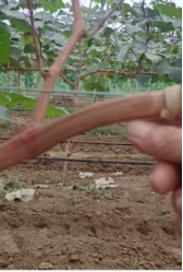 春季幼苗移栽后葡萄幼苗可快速生根發(fā)芽,幼芽健壯,葉片肥厚,主莖生長(zhǎng)快,粗壯。至秋末落葉前,浙江杭州市富陽(yáng)區(qū)和山東萊州市的葡萄園,植株都已達(dá)成齡期,根系發(fā)達(dá),莖粗2.5-3.0厘米,主莖長(zhǎng)達(dá)8米以上,具備正常掛果的條件。