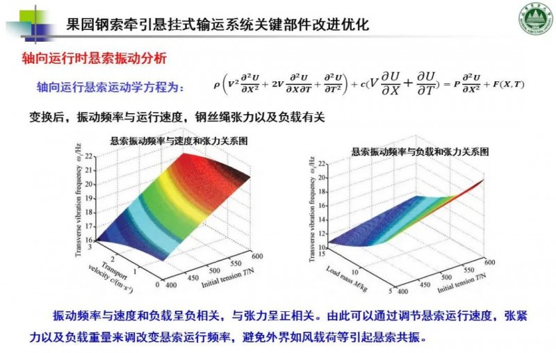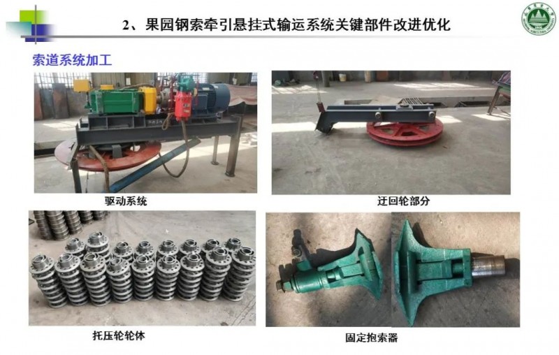 專家組經(jīng)評議認(rèn)為,該成果基于計(jì)算機(jī)數(shù)值模擬仿真及理論分析,對防振減損田間運(yùn)輸車、遠(yuǎn)程遙控自走式單軌車及鋼索牽引懸掛式輸運(yùn)系統(tǒng)三種丘陵山區(qū)林果輸運(yùn)設(shè)備進(jìn)行了整體結(jié)構(gòu)、關(guān)鍵部件及遠(yuǎn)程遙控系統(tǒng)優(yōu)化設(shè)計(jì),開發(fā)了多維網(wǎng)格遠(yuǎn)程遙控輸運(yùn)系統(tǒng),實(shí)現(xiàn)了“軌、索、車相結(jié)合”的多種輸運(yùn)模式,解決了我國丘陵山區(qū)不同地形果園林果機(jī)械化輸運(yùn)的技術(shù)難題,索道穩(wěn)定運(yùn)行速度可達(dá)到40m/min,軌道最大爬坡角度達(dá)35°,可為丘陵山區(qū)果園果品產(chǎn)業(yè)降低生產(chǎn)輸運(yùn)成本20%以上,具有省工省力、安全可靠、輸運(yùn)效率高、節(jié)省人工成本、實(shí)用性及適應(yīng)性強(qiáng)等特點(diǎn)。成果技術(shù)總體達(dá)到了國內(nèi)領(lǐng)先水平,其中“索軌結(jié)合多維網(wǎng)格輸運(yùn)模式”技術(shù)達(dá)到國際先進(jìn)水平,技術(shù)熟化程度較高,預(yù)期經(jīng)濟(jì)、社會(huì)效益顯著。