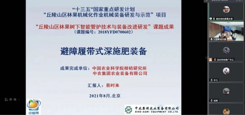 2021年8月,受中國農(nóng)業(yè)科學院柑桔研究所委托,中華全國供銷合作總社科技推廣中心作為供銷合作系統(tǒng)內(nèi)唯一受總社委托開展科技成果管理相關(guān)工作的機構(gòu),按照科技部《科技成果評價辦法》,本著“科學、獨立、客觀、公正”的原則,組織七位相關(guān)領(lǐng)域?qū)<乙浴熬€上+線下”形式對“避障履帶式深施肥裝備”成果進行了科技成果評價。
