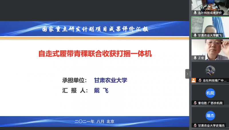 2021年8月,受甘肅農(nóng)業(yè)大學(xué)委托,中華全國(guó)供銷合作總社科技推廣中心作為供銷合作系統(tǒng)內(nèi)唯一受總社委托開展科技成果管理相關(guān)工作的機(jī)構(gòu),按照科技部《科技成果評(píng)價(jià)辦法》,本著“科學(xué)、獨(dú)立、客觀、公正”的原則,組織七位相關(guān)領(lǐng)域?qū)<乙浴熬€上+線下”形式對(duì)“自走式履帶青稞聯(lián)合收獲打捆一體機(jī)”成果進(jìn)行了科技成果評(píng)價(jià)。