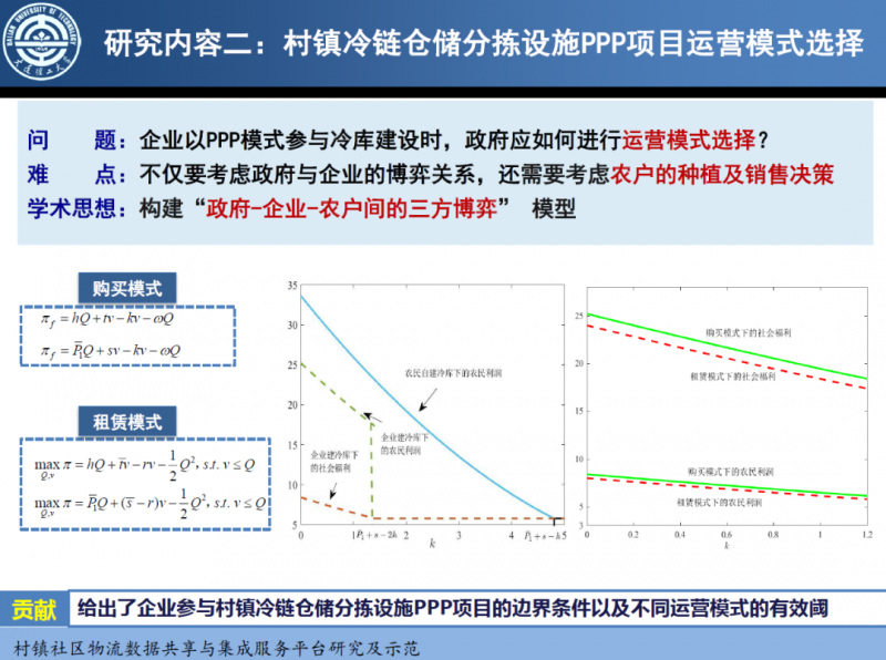 專(zhuān)家組經(jīng)評(píng)議認(rèn)為,成果針對(duì)村鎮(zhèn)冷鏈倉(cāng)儲(chǔ)分揀設(shè)施投融資問(wèn)題,采用案例分析、訪談?wù){(diào)研、數(shù)學(xué)建模、仿真優(yōu)化等方法,設(shè)計(jì)了村鎮(zhèn)冷鏈倉(cāng)儲(chǔ)分揀設(shè)施PPP項(xiàng)目的交易結(jié)構(gòu),解決了不同PPP項(xiàng)目運(yùn)營(yíng)模式的選擇以及政府補(bǔ)貼對(duì)象、補(bǔ)貼水平等決策問(wèn)題,為基于PPP的村鎮(zhèn)冷鏈倉(cāng)儲(chǔ)分揀設(shè)施投融資模式設(shè)計(jì)提供了新的分析框架,富有創(chuàng)新性,具有重要的理論價(jià)值與應(yīng)用價(jià)值。成果中的農(nóng)業(yè)PPP項(xiàng)目的交易結(jié)構(gòu)設(shè)計(jì)以及政府補(bǔ)貼設(shè)計(jì)等內(nèi)容具有示范性作用,能夠提高社會(huì)資本參與農(nóng)業(yè)PPP項(xiàng)目積極性,同時(shí)注重保護(hù)農(nóng)民利益,所提出的政府補(bǔ)貼及規(guī)制政策建議對(duì)于農(nóng)業(yè)PPP項(xiàng)目的政策設(shè)計(jì)具有較強(qiáng)的借鑒意義。成果面向我國(guó)村鎮(zhèn)冷鏈倉(cāng)儲(chǔ)分揀設(shè)施投融資的實(shí)際需求,通過(guò)交易結(jié)構(gòu)及回報(bào)機(jī)制設(shè)計(jì)提高社會(huì)資本參與村鎮(zhèn)冷鏈倉(cāng)儲(chǔ)分揀設(shè)施PPP項(xiàng)目的積極性,通過(guò)績(jī)效付費(fèi)以及政府補(bǔ)貼、規(guī)制設(shè)計(jì)保護(hù)農(nóng)民利益,有利于推動(dòng)我國(guó)村鎮(zhèn)冷鏈倉(cāng)儲(chǔ)分揀設(shè)施的建設(shè),解決生鮮農(nóng)產(chǎn)品產(chǎn)銷(xiāo)銜接問(wèn)題,對(duì)于提高農(nóng)民收入、促進(jìn)鄉(xiāng)村振興具有積極的作用。成果總體達(dá)到了國(guó)內(nèi)先進(jìn)水平,其中“項(xiàng)目交易結(jié)構(gòu)設(shè)計(jì)以及政府補(bǔ)貼設(shè)計(jì)”達(dá)到了國(guó)內(nèi)領(lǐng)先水平。