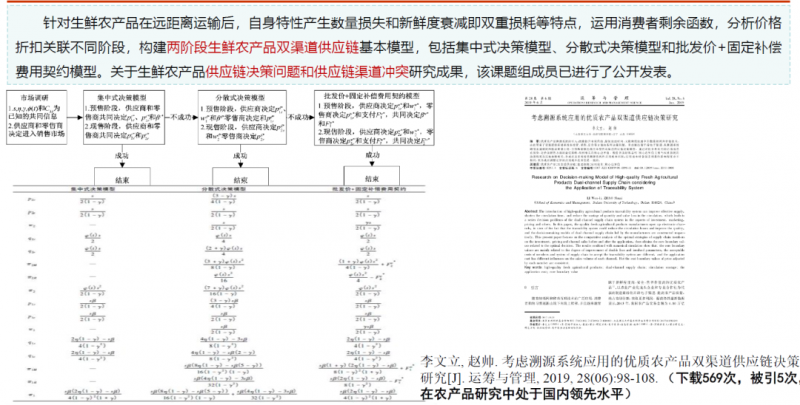 專家組經(jīng)評議認(rèn)為,成果針對我國村鎮(zhèn)社區(qū)居民消費(fèi)升級需求及連鎖商貿(mào)采購難題,分別針對大數(shù)據(jù)賦能供應(yīng)商選擇、農(nóng)產(chǎn)品生產(chǎn)、小村微店供貨開展模式創(chuàng)新研究,構(gòu)建了數(shù)智化供應(yīng)商甄選集采模式、連鎖商超直營農(nóng)場集采模式、面向小村微店供貨的集采物流模式。搭建了村鎮(zhèn)社區(qū)連鎖商超集采平臺,實(shí)現(xiàn)了供應(yīng)鏈垂直整合與農(nóng)產(chǎn)品生產(chǎn)后向一體化、連鎖商貿(mào)與小村微店競合共贏,富有創(chuàng)新性,具有重要的學(xué)術(shù)價(jià)值和應(yīng)用價(jià)值。成果成功應(yīng)用在十堰新合作連鎖商貿(mào)50余個(gè)直供直采基地及50家線下零售小店,京東電商20余個(gè)自營農(nóng)場及30家京東便利店。對于村鎮(zhèn)社區(qū)連鎖商超規(guī)避采購風(fēng)險(xiǎn)、降低采購成本、提升采購效率作用明顯,經(jīng)濟(jì)效益顯著。成果總體達(dá)到國內(nèi)先進(jìn)水平。