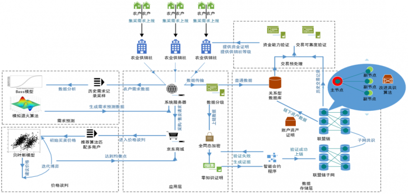 專家組經(jīng)評議認(rèn)為,成果針對當(dāng)前平臺對商超用戶需求捕捉不精準(zhǔn)、缺乏有效推薦的問題,提出了基于用戶聚類和商品聚類的混合協(xié)同過濾推薦算法,使用外部購買記錄,獲取用戶屬性對商品屬性的偏好矩陣,實現(xiàn)初步推薦;對用戶與商品雙重聚類,解決了用戶評價矩陣稀疏度高的問題;利用降噪算法,提升聚類效果;引入融合因子 ,結(jié)合用戶與商品聚類,獲取推薦集;利用基于商品的協(xié)同過濾,獲取關(guān)聯(lián)規(guī)則推薦集,結(jié)合分類算法對用戶個性化的偏好賦權(quán),獲取用戶個性化推薦集,實現(xiàn)對用戶多維度精準(zhǔn)推薦。利用層次分析法實現(xiàn)供應(yīng)商及其產(chǎn)品的質(zhì)量價格對比,研發(fā)供應(yīng)商及小商超信用評價系統(tǒng),實現(xiàn)了信用有效評價,研發(fā)了銷量預(yù)測系統(tǒng),準(zhǔn)確預(yù)測商超需求,實現(xiàn)個性化推薦。成果構(gòu)建了操作性強、準(zhǔn)確度高的村鎮(zhèn)社區(qū)集采技術(shù)體系,改變了以往人工經(jīng)驗式集采方式,提升了集采過程的信息化、智能化水平,為科學(xué)集采提供了指導(dǎo)依據(jù)。成果技術(shù)熟化程度高,達到國內(nèi)領(lǐng)先水平,經(jīng)濟、社會效益顯著。