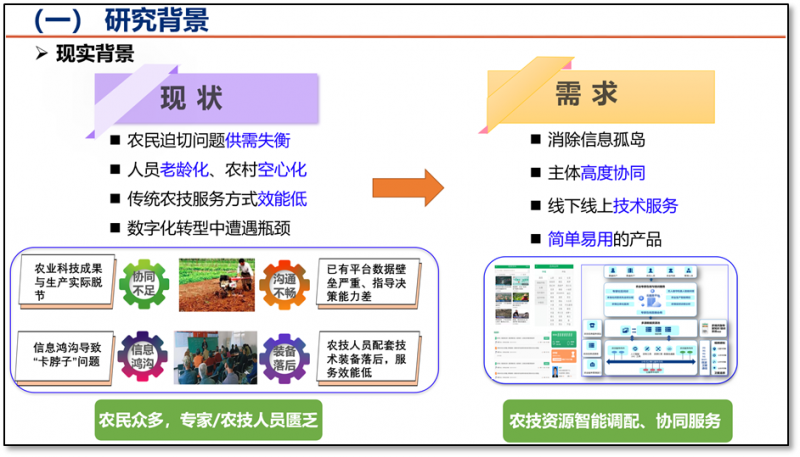 該成果研制了農(nóng)業(yè)專家在線服務(wù)與培訓(xùn)平臺,創(chuàng)新性構(gòu)建了村鎮(zhèn)數(shù)字化領(lǐng)域農(nóng)業(yè)科技服務(wù)供需嚴(yán)重不對稱等背景下農(nóng)業(yè)專家在線服務(wù)系列技術(shù)方法。圍繞村鎮(zhèn)農(nóng)業(yè)科技服務(wù)在消除信息孤島、主體高度協(xié)同、線下線上技術(shù)服務(wù)和問答快速反饋等方面的迫切需求,基于5G 、新媒體、人工智能技術(shù),突破了農(nóng)業(yè)專家在線指導(dǎo)培訓(xùn)資源智能匹配模型和高帶寬低延時農(nóng)業(yè)專家知識立體多維直供2項(xiàng)關(guān)鍵技術(shù)。2. 技術(shù)和經(jīng)濟(jì)指標(biāo)的先進(jìn)程度 |