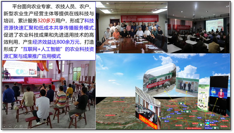 該成果整合了全國50萬余名農(nóng)業(yè)專家和農(nóng)技員、10萬條農(nóng)業(yè)生產(chǎn)種植養(yǎng)殖技術(shù)、2600余個農(nóng)業(yè)技術(shù)培訓(xùn)課件等資源,在江西等5省的10個示范點(diǎn)開展應(yīng)用推廣,覆蓋4萬畝耕地,產(chǎn)生經(jīng)濟(jì)效益800余萬元,打造形成了“互聯(lián)網(wǎng)+人工智能”的農(nóng)業(yè)科技資源匯聚與成果推廣應(yīng)用模式,取得經(jīng)濟(jì)、社會和生態(tài)效益,有助于推動鄉(xiāng)村振興。