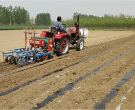 (3)施肥方法:有機肥在耕地前施入?;试谄饓挪シN時一次性集中施在播種溝中間,種與肥隔離,深施15厘米以上。選擇適宜的播種機,一次性完成起壟、施肥、播種、噴除草劑、覆膜、壓土等工序。