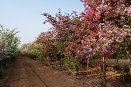 高效授粉樹配置靈活,可以和蘋果混栽,也可以單獨成行列植,在果園周圍行植,更能打造優(yōu)美的植物景觀,提高觀光果園的品位。高效授粉樹成花極易,坐果量大,為保證充足的授粉需要,需適當短截,增施氮肥,特別是加強花后復剪,減少果實消耗,保證連年足量開花??紤]到后期的景觀需要,盡量采用密枝圓冠的修剪造型,提高產(chǎn)品附加值。