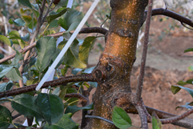 第三步:秋接矮砧,8月中下旬,采用帶木質(zhì)芽接方式嫁接采集的矮化砧品種接穗;