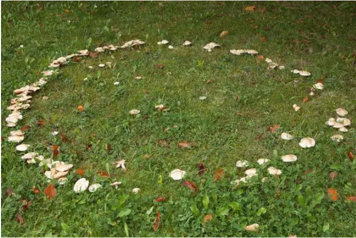草地上的蘑菇“仙女圈”(菌絲體向四周以相同速度輻射生長,同時產(chǎn)生子實體,因此長出的蘑菇排列成圓環(huán)狀)|圖源:Ancient Origins