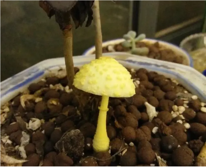 花盆里的純黃白鬼傘,對盆里的植物無害|圖源:agricoop.cn