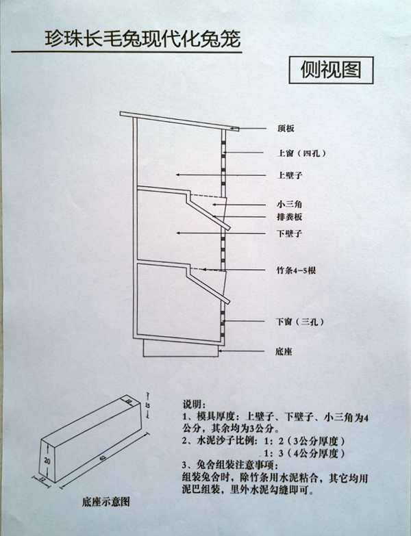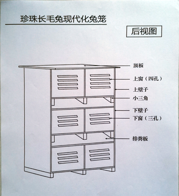 (3)兔籠建造。以采用三層立體式兔籠最為適宜,兔籠尺寸一般為70厘米×60厘米×55厘米或60厘米×60厘米×55厘米。養(yǎng)殖密度不宜過高,規(guī)模養(yǎng)殖1畝地可建800個兔籠。一般600只兔可年產(chǎn)1噸兔毛,兩個人可管理1200只兔子。