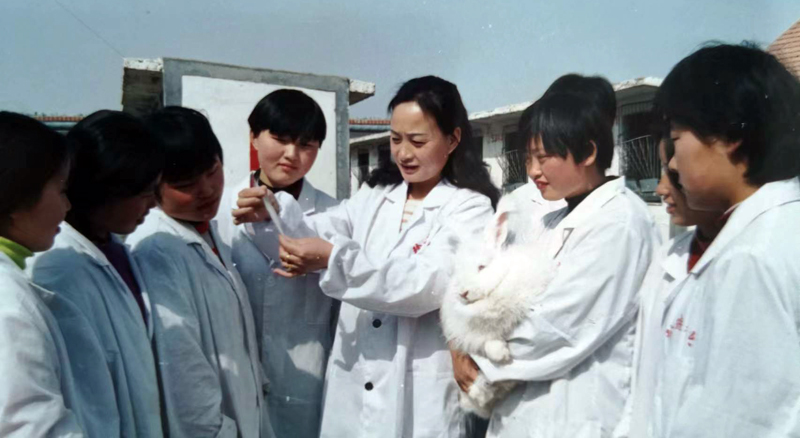 創(chuàng)業(yè)初期,工作環(huán)境生活條件都十分簡陋艱苦,有時為了工作方便,張梅春吃住在兔棚里,育種工作既辛苦又枯燥,為了能得到育種第一手資料,無論是夏日還是寒冬她都堅守在兔場與丈夫一起做實驗,細心觀察,嚴格測定,用心記錄著每一項數(shù)據(jù)……在實踐中,張梅春也不忘多學(xué)知識豐富自己。為了育種的順利進展,她不僅參加了中國農(nóng)村致富技術(shù)函授大學(xué)學(xué)習(xí),還到菜陽農(nóng)學(xué)院進行三年深造學(xué)習(xí),而且一有機會就向?qū)<艺埥?。張梅春說:書本知識關(guān)健在于你能不能融會貫通靈活運用。對科學(xué)知識的超強領(lǐng)悟力,使張梅春在長毛兔育種領(lǐng)域里如魚得水。在日復(fù)一日的實踐研究中,她對長毛兔特性了如指掌。張總是個急性子,走起路來象風(fēng)車,工作起來不要命,這是身邊工作人員對張梅春的評價。的確與她在一起工作必須快捷高效。