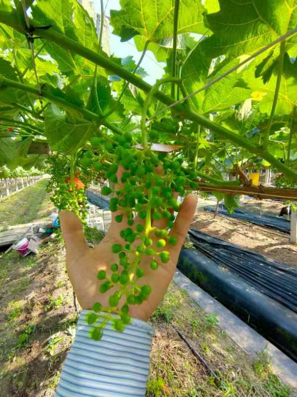 陽光玫瑰等葡萄品種移栽后第二年,一般施化肥和普通有機肥的還果園處在初結(jié)果期,還是以促進營養(yǎng)生長,使枝條增粗和主枝繼續(xù)延長,為進入結(jié)果期構(gòu)建齡樹形。施用豐田寶生物有機肥的果園,葡萄提前1年進入結(jié)果期,畝產(chǎn)可達1500公斤以上,且產(chǎn)品優(yōu)質(zhì)。葡萄主干繼續(xù)生長,植株健壯,實現(xiàn)第一年建園,第二年盈利的目標