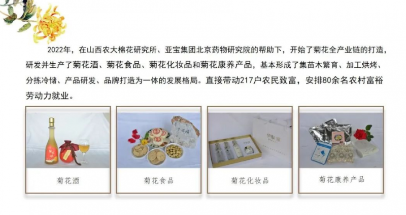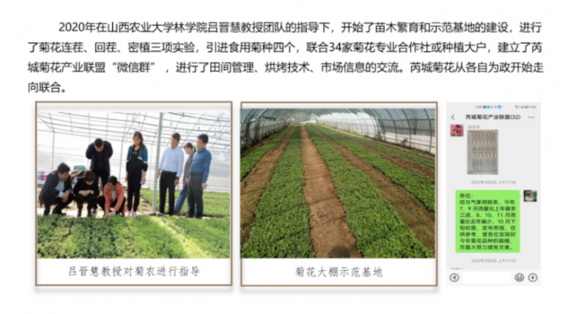 山西省及運(yùn)城市、芮城縣各級(jí)政府高度重視菊花產(chǎn)業(yè)的發(fā)展,出臺(tái)了一系列扶持政策。在產(chǎn)業(yè)規(guī)劃方面,與山西農(nóng)業(yè)大學(xué)就菊花產(chǎn)業(yè)發(fā)展簽訂合作協(xié)議,制定了《芮城菊花產(chǎn)業(yè)發(fā)展規(guī)劃(2022—2032)》,為芮城菊花產(chǎn)業(yè)發(fā)展指明了方向;在標(biāo)準(zhǔn)制定方面,先后制定了《茶菊種植技術(shù)規(guī)程》《金絲皇菊烘干加工技術(shù)規(guī)程》等各類標(biāo)準(zhǔn),并于2023年制定了《芮城縣菊花產(chǎn)業(yè)標(biāo)準(zhǔn)體系》,為育苗、栽培、病蟲(chóng)害綠色防控、園區(qū)機(jī)械化管理、貯藏、運(yùn)輸、加工等全產(chǎn)業(yè)鏈生產(chǎn)管理環(huán)節(jié)提供標(biāo)準(zhǔn)化技術(shù)參考;在資金扶持方面,設(shè)立了產(chǎn)業(yè)發(fā)展專項(xiàng)資金,用于支持菊花種植基地建設(shè)、加工企業(yè)設(shè)備升級(jí)、品牌宣傳推廣等,為菊花產(chǎn)業(yè)的發(fā)展提供了有力的政策保障。