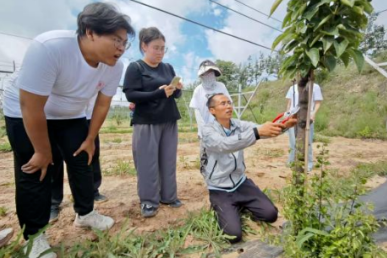 初次踏入隰縣玉露香梨研究示范基地,山上的玉露香梨已掛果,青綠色的果實如拳頭般大小,密匝匝的葉子透著蓬勃生機。蹲在梨樹下辨認病蟲害時,課本里抽象的“梨黑星病”“梨木虱”,化作葉片上的黑色霉層、嫩梢上蜷縮的蟲蛻,一下子變得具體鮮活。