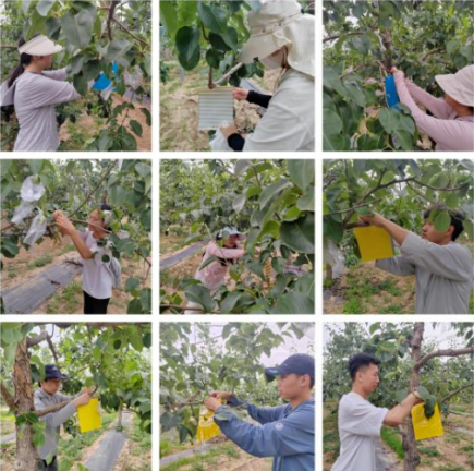 也是在這里,我首次見識到壓差快速預(yù)冷、土壤環(huán)境質(zhì)量提升、新型微生物菌劑噴施等技術(shù)在梨園生產(chǎn)中的實際應(yīng)用。結(jié)合植物保護專業(yè)知識,我們重點學(xué)習(xí)了梨園主要害蟲的仿生與生物防治技術(shù),以及梨樹橋接技術(shù),讓課本知識與田間實踐有了初次碰撞。