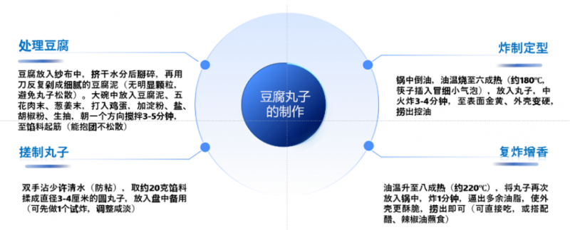 為了讓手藝更好地傳承,非遺工坊還編寫了《五臺豆腐丸子制作技藝圖譜》,將老匠人的經(jīng)驗轉(zhuǎn)化為可量化的標(biāo)準(zhǔn),比如豆腐與調(diào)料的配比、煎制的溫度區(qū)間等,既保留了傳統(tǒng)精髓,又方便新手學(xué)習(xí)。這讓更多人意識到,做丸子不只是謀生的手藝,更是值得驕傲的文化傳承。