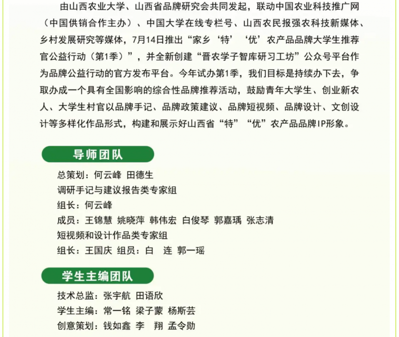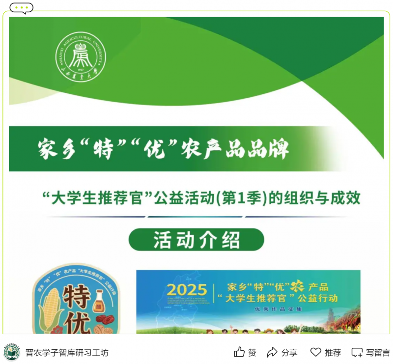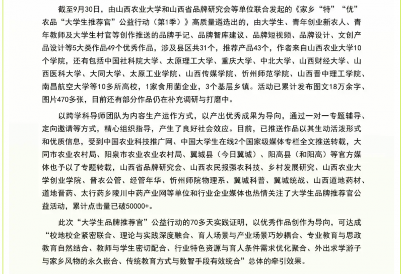 山西農(nóng)業(yè)大學(xué)、山西省品牌研究會舉辦農(nóng)產(chǎn)品品牌大學(xué)生推薦官公益行動 2025.08.04