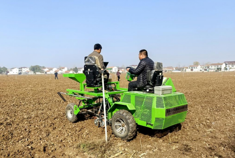 種植大戶使用精播機(jī)在試驗(yàn)田播種冬小麥。(徐松 攝)
