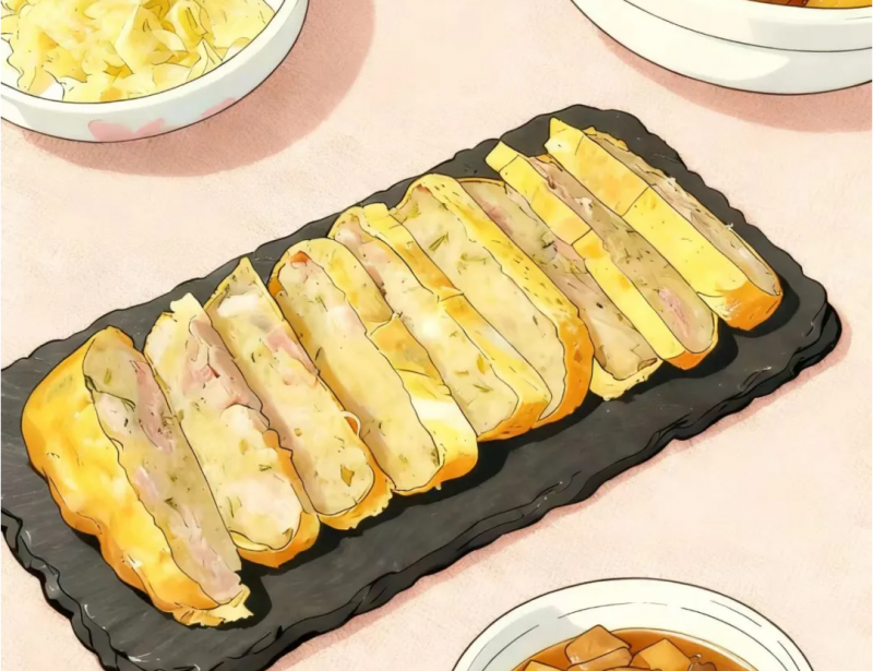 將包好的卷卷擺放到籠屜中,采用傳統(tǒng)方法上鍋蒸熟。蒸好后,若涼吃需先取下蒸籠晾涼再取出,避免燙破蛋皮;熱吃可直接切塊。晾涼后的卷卷放在案板上,用另一塊案板壓上重物,根據(jù)卷卷承受能力調(diào)整重量,壓制約1個多小時(shí)。最后在表面抹上香油防蛋皮干硬,成品晾涼后可冷藏儲存。吃的時(shí)候,搭配上用蒜末、香醋、香油、辣椒油等調(diào)制而成的蘸料,酸辣開胃,讓太谷卷卷的風(fēng)味更上一層樓。