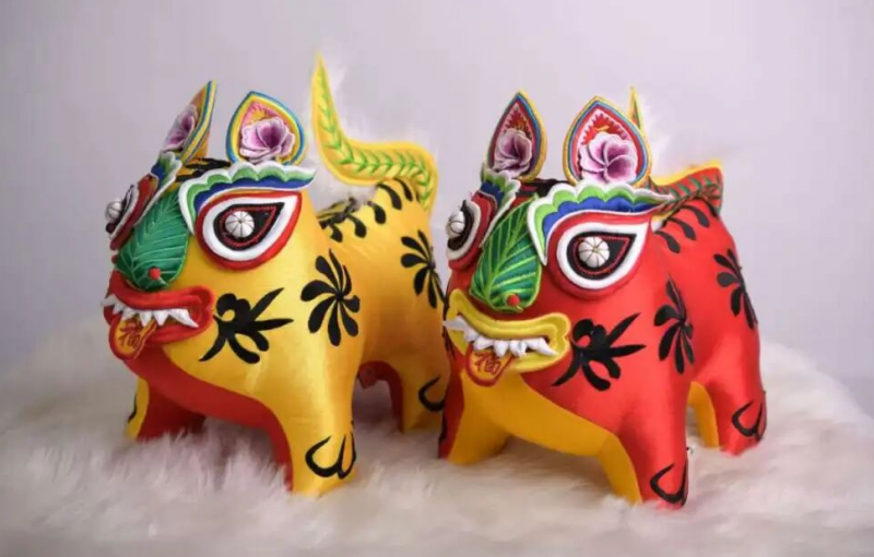 黎侯虎的精妙之處,在于其精湛的工藝。制作黎侯虎,要經(jīng)過剪、縫、刺、編等32道工序,工序復(fù)雜且精細(xì),每一步都傾注著繡娘的心血。材料一般選用當(dāng)?shù)貎?yōu)質(zhì)的棉布,確保布料柔軟舒適且耐用。繡娘們要依據(jù)設(shè)計好的圖紙,將布料剪成虎身、虎頭、虎四肢等各個部件。最難的是刺繡。繡娘們用五彩絲線,在虎身繡出精美的花紋,這些刺繡圖案不僅美觀,更增添了黎侯虎的文化內(nèi)涵。之后便是填充與縫合,將裁剪好的布料填充棉花,使其飽滿立體,再精心縫合各個部件,一只栩栩如生的黎侯虎便初現(xiàn)雛形。