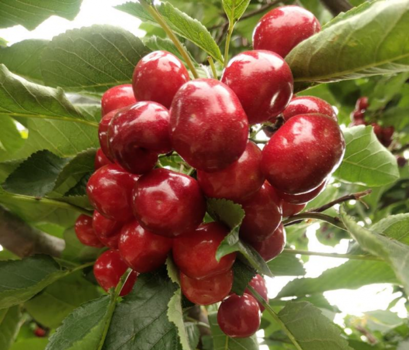 在品種培育上,緊跟科技步伐,不斷引進(jìn)和推廣優(yōu)良品種。目前主栽品種有紅燈、美早、薩米特等10余個(gè),還積極嘗試美國(guó)一號(hào)、金頂紅、俄羅斯8號(hào)等新品種。同時(shí),主推日光溫室設(shè)施栽培新模式和以吉塞拉6號(hào)砧木為基礎(chǔ)的寬行密植矮化栽培新模式。矮化密植栽培讓櫻桃樹的管理更加便捷,也提高了土地利用率,使櫻桃能夠更早結(jié)果、實(shí)現(xiàn)豐產(chǎn)。