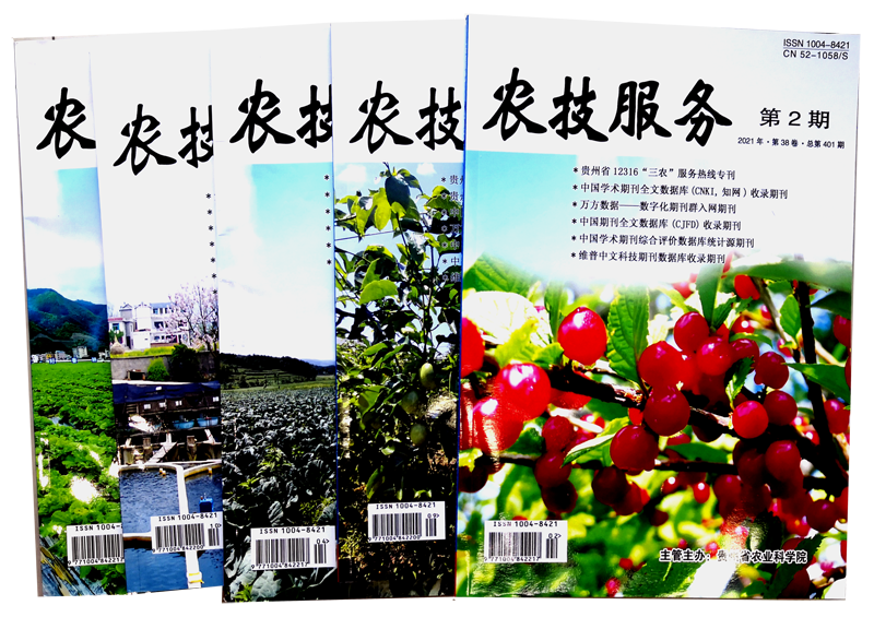 《農(nóng)技服務(wù)》雜志創(chuàng)刊于1984年。目前,是貴州省農(nóng)業(yè)科學(xué)院主管主辦、貴州省農(nóng)業(yè)委員會支持出版的綜合性農(nóng)業(yè)科技月刊,國際刊號ISSN 1004-8421,國內(nèi)刊號CN 52-1058/S,郵發(fā)代號66-29;是中國學(xué)術(shù)期刊綜合評價(jià)數(shù)據(jù)庫統(tǒng)計(jì)源期刊、中國期刊全文數(shù)據(jù)庫(中國知網(wǎng))全文收錄期刊、中國學(xué)術(shù)期刊網(wǎng)全文數(shù)據(jù)庫全文收錄期刊、萬方數(shù)據(jù)-數(shù)字化期刊群入網(wǎng)期刊、維普數(shù)據(jù)庫收錄期刊、貴州省產(chǎn)業(yè)扶貧工作專班技術(shù)培訓(xùn)用刊。