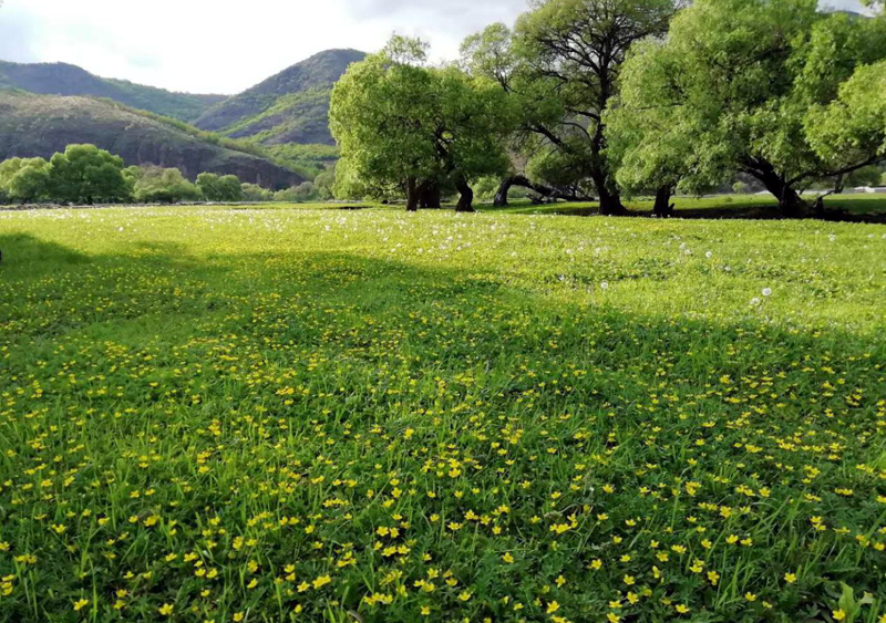 有了水,一切都變得滋潤(rùn)和活泛起來。河流兩岸生長(zhǎng)著挺拔的柞樹、豐潤(rùn)的青草、清香的柳蒿菜、蕨菜、廣東菜、星星點(diǎn)點(diǎn)的小黃花、零零落落的小白花、鮮艷欲滴芍藥花等植物。水養(yǎng)綠色,滋潤(rùn)生態(tài),生態(tài)如同生命,人與自然和諧共生是建設(shè)美好家園的底線,良好的生態(tài)需要優(yōu)先保護(hù)。天然綠色,是最讓人舒服的顏色。在這里,可以讓自己盡情地沉浸在陽光、綠地之間,放眼鮮花叢中,看著天空白云飄過,享受周圍青草的清新味夾雜著花香飄散四溢,暫時(shí)逃離日??菰锏纳睿w驗(yàn)無拘無束的自由和暢快,放飛心靈開啟任性的旅行。