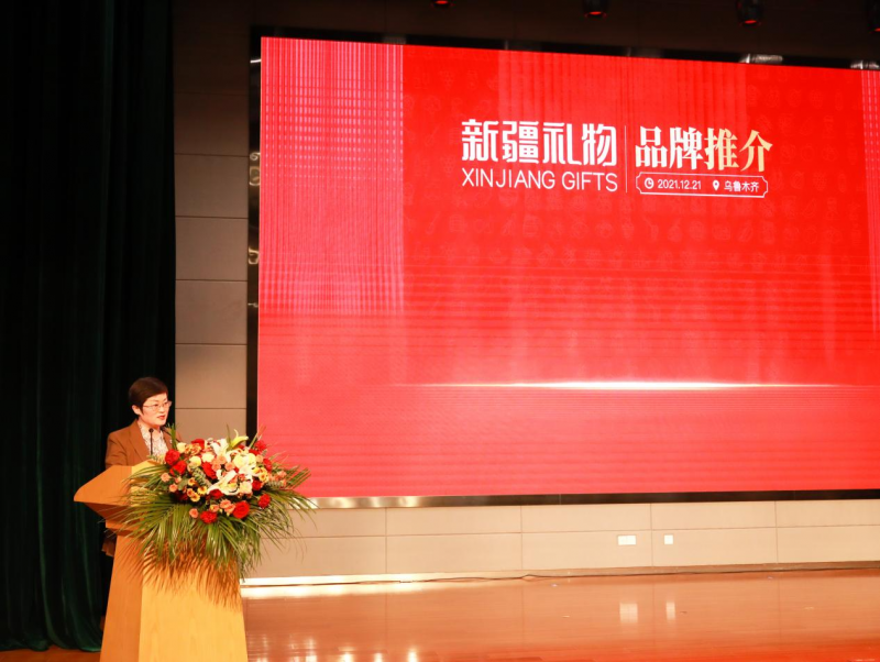 ▲ “新疆禮物”視覺形象設計為本次大賽的專項賽內容,新疆文化旅游投資集團有限公司副總經(jīng)理李翠榮在啟動儀式上介紹了“新疆禮物”品牌建設情況,并現(xiàn)場發(fā)布了新疆禮物企業(yè)名錄