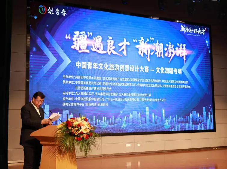 大賽由共青團中央青年發(fā)展部、文化和旅游部產(chǎn)業(yè)發(fā)展司、新疆維吾爾自治區(qū)文化和旅游廳、中國光大集團文化旅游事業(yè)部主辦,由中國青旅集團有限公司、共青團新疆維吾爾自治區(qū)委員會、共青團新疆生產(chǎn)建設兵團委員會、新疆生產(chǎn)建設兵團文化體育廣電和旅游局、新疆文化旅游投資集團有限公司聯(lián)合承辦。光大集團總部相關部門、相關企業(yè)負責人出席活動。