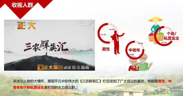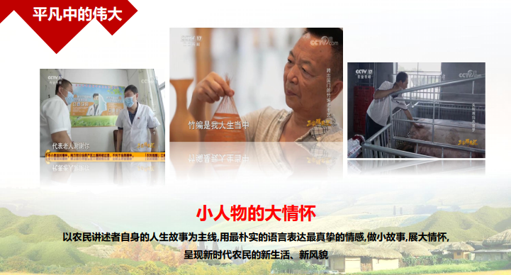 節(jié)目?jī)?nèi)容勵(lì)志,調(diào)性上揚(yáng),緊抓主流題材,講好“三農(nóng)”故事,樹立良好的奮斗夢(mèng)典范,成功勵(lì)志的過(guò)程中弘揚(yáng)社會(huì)正能量。