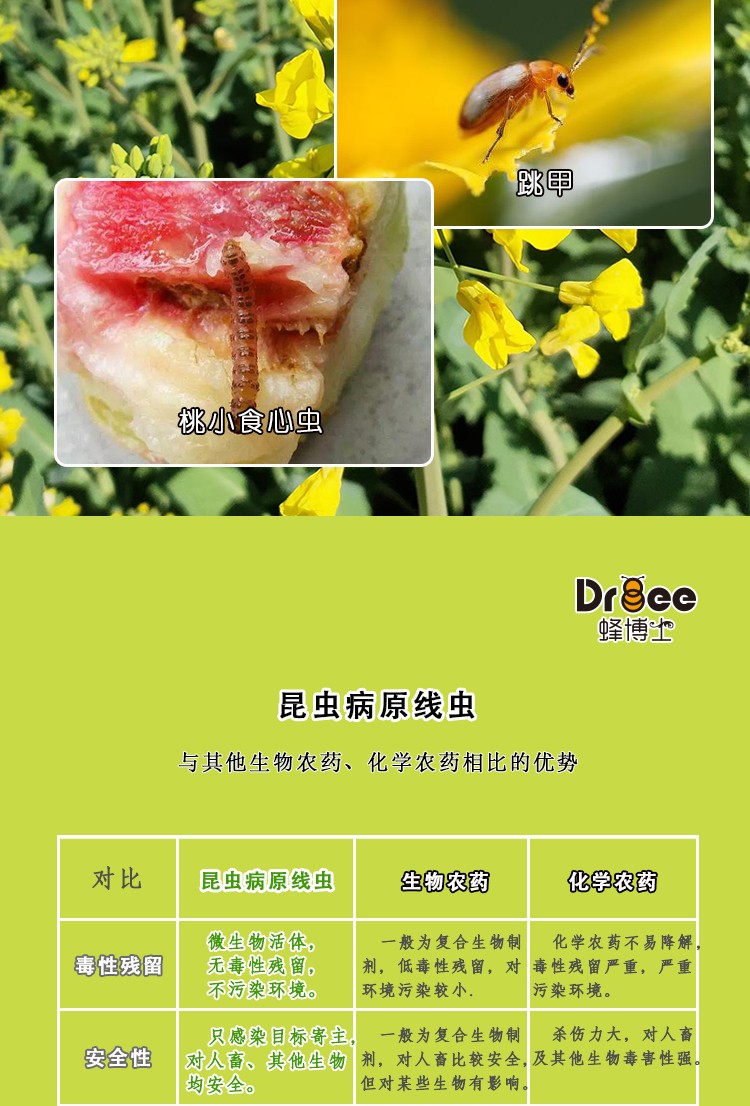 - 作用:生物防治跳甲、地老虎、桃小食心蟲(chóng)