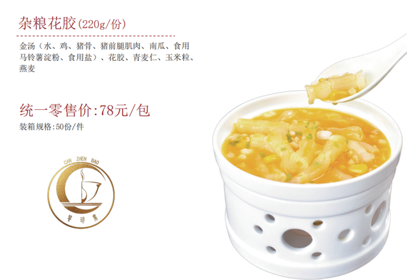 馬鈴薯淀粉、食用鹽)、花膠、青麥仁、玉米粒、