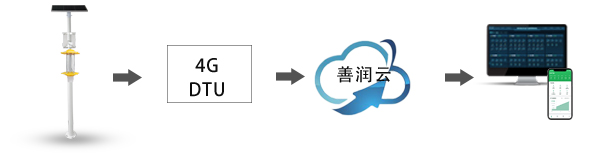 通過(guò)RS485轉(zhuǎn)接4G通訊模塊,進(jìn)行無(wú)線傳輸,數(shù)據(jù)可上傳到善潤(rùn)云平臺(tái),通過(guò)我司服務(wù)器讀取數(shù)據(jù),也可上傳到用戶自有平臺(tái),通過(guò)電腦端軟件或者手機(jī)APP進(jìn)行數(shù)據(jù)實(shí)時(shí)查看。