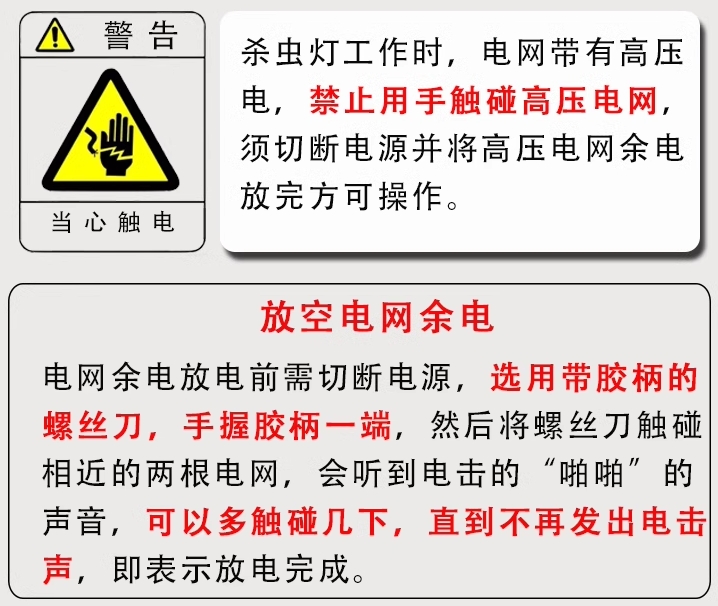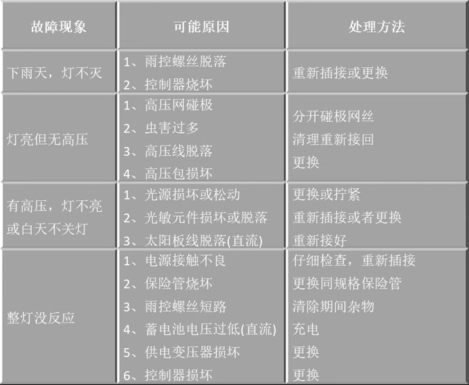 觸殺蟲網(wǎng):采用不銹鋼方形豎網(wǎng)連接,豎絲直徑2.5mm,電網(wǎng)電壓:6KV±500V,設(shè)有電網(wǎng)過(guò)流短路保護(hù)裝置