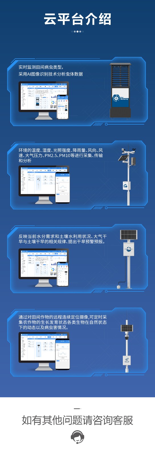 關(guān)鍵詞:四情監(jiān)測系統(tǒng)智慧農(nóng)業(yè)農(nóng)田監(jiān)測氣象蟲情土壤墑情苗情免費(fèi)云平臺,供應(yīng),現(xiàn)代農(nóng)業(yè)(智慧 數(shù)字 生態(tài))無人機(jī),檢測/傳感器/攝像頭/數(shù)據(jù)采集